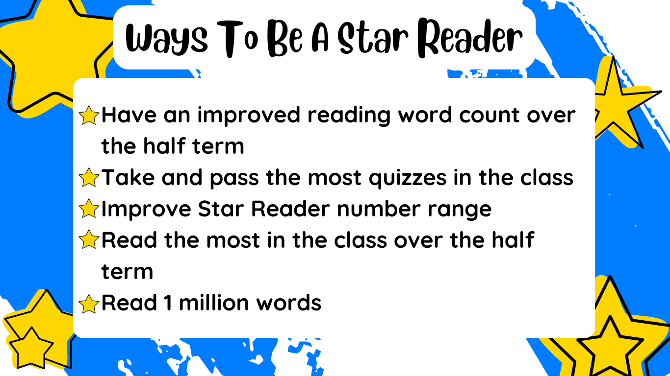 Each half term we look at Accelerated Reader to see how many words each child has read.